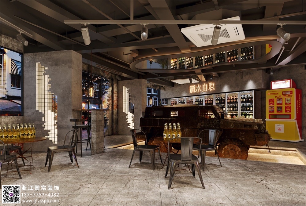 水泥工業風酒吧裝修設計案例效果圖